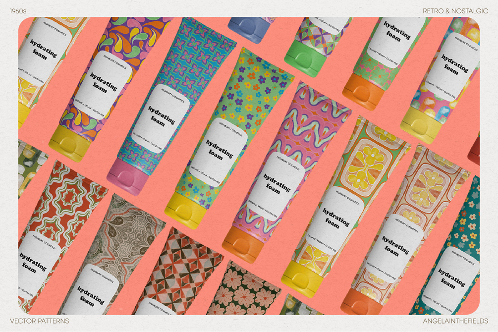 Get groovy with these swinging sixties-inspired patterns, featuring retro wallpaper designs with a modern twist. Inject a touch of nostalgia into your projects while keeping them trendy and contemporary. Perfect for posters, groovy packaging, retro-inspired stationery, and more! Easily customize colors and resize patterns using the included 'all-in-one' AI file.