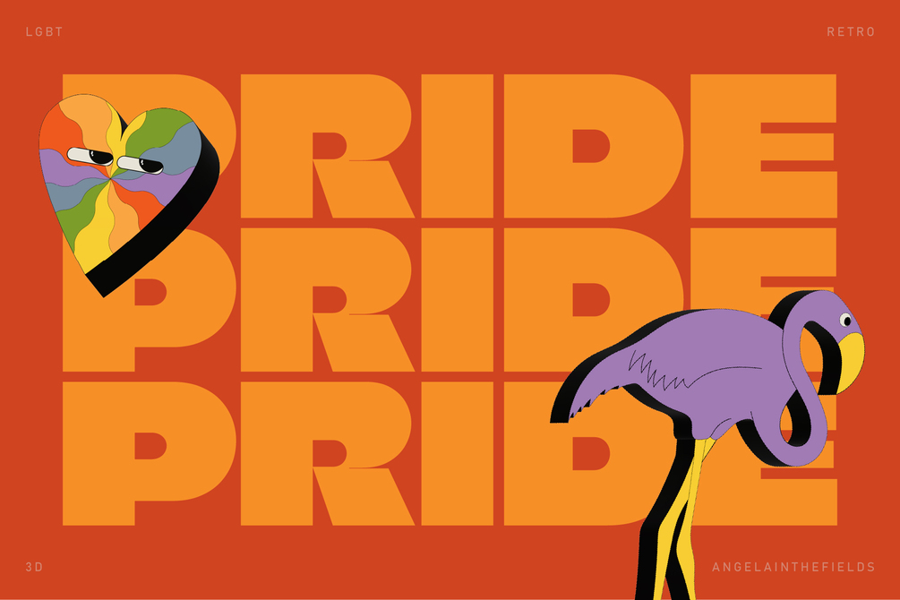 - 37 LGBT themed retro stickers in 3D Illustrator file & PNG (width 3000px)