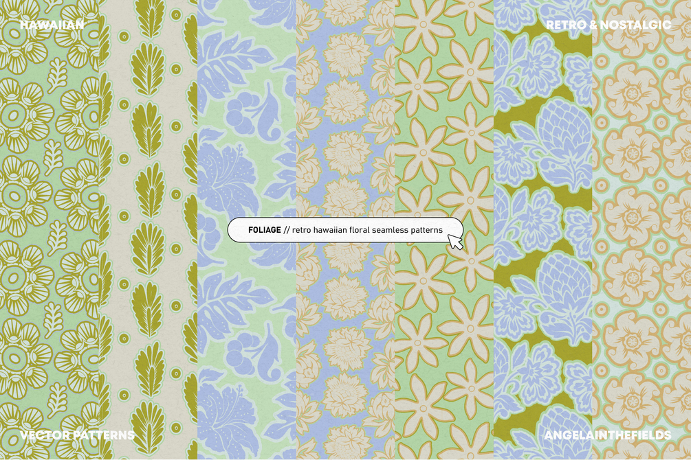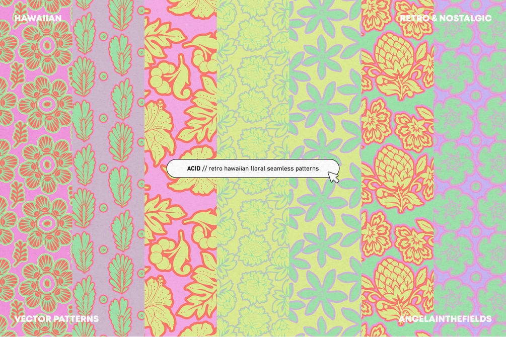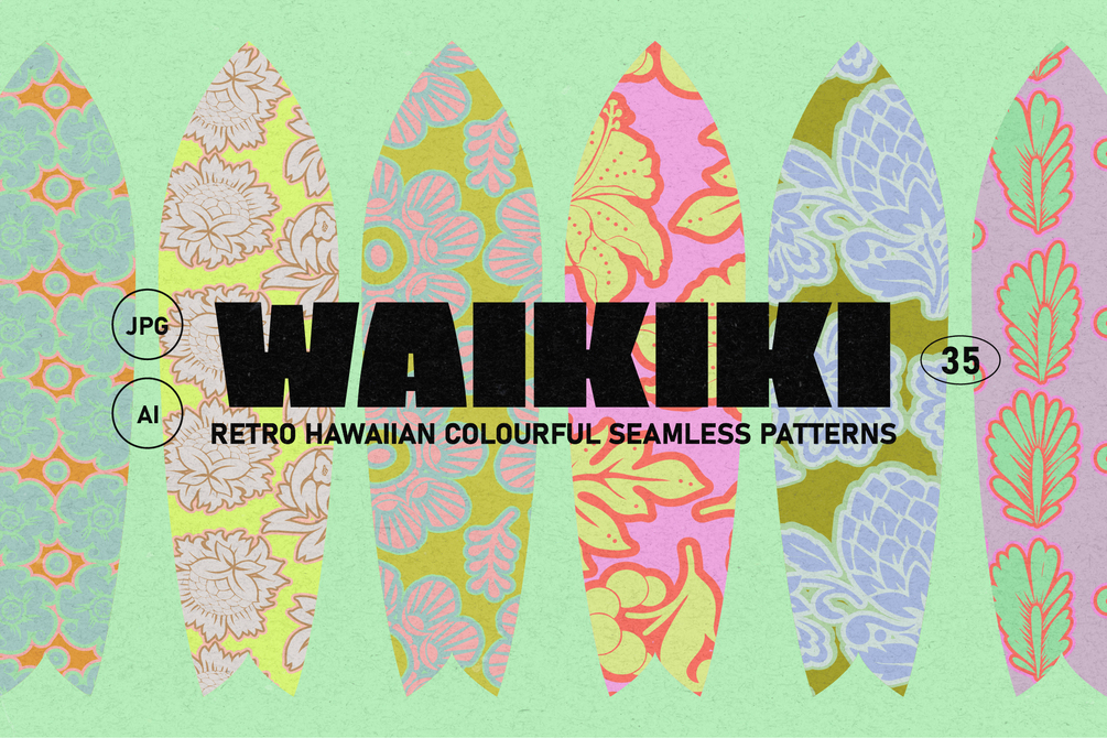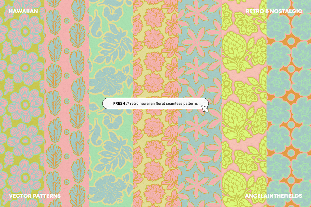 Escapism trend is going strong - and what better way to add to it than with some cool Hawaiian patterns. These vector patterns are absolutely amazing when combined with text or logos to inject some freshness to your branding; but they work just as lovely as packaging, stationery or social media patterns.